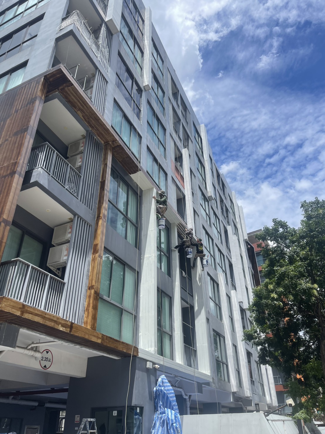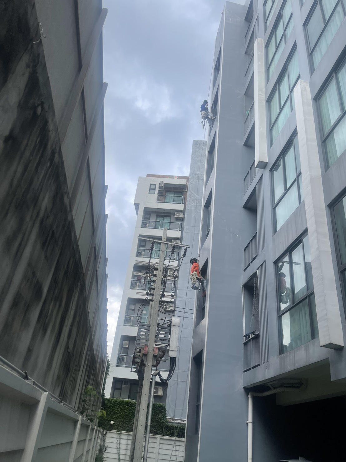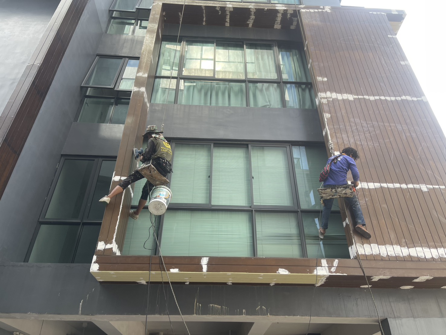 ยิงขอบกระจกและทาสีที่ตึก โมทรีฟ แจ้งวัฒนะซอย 10
