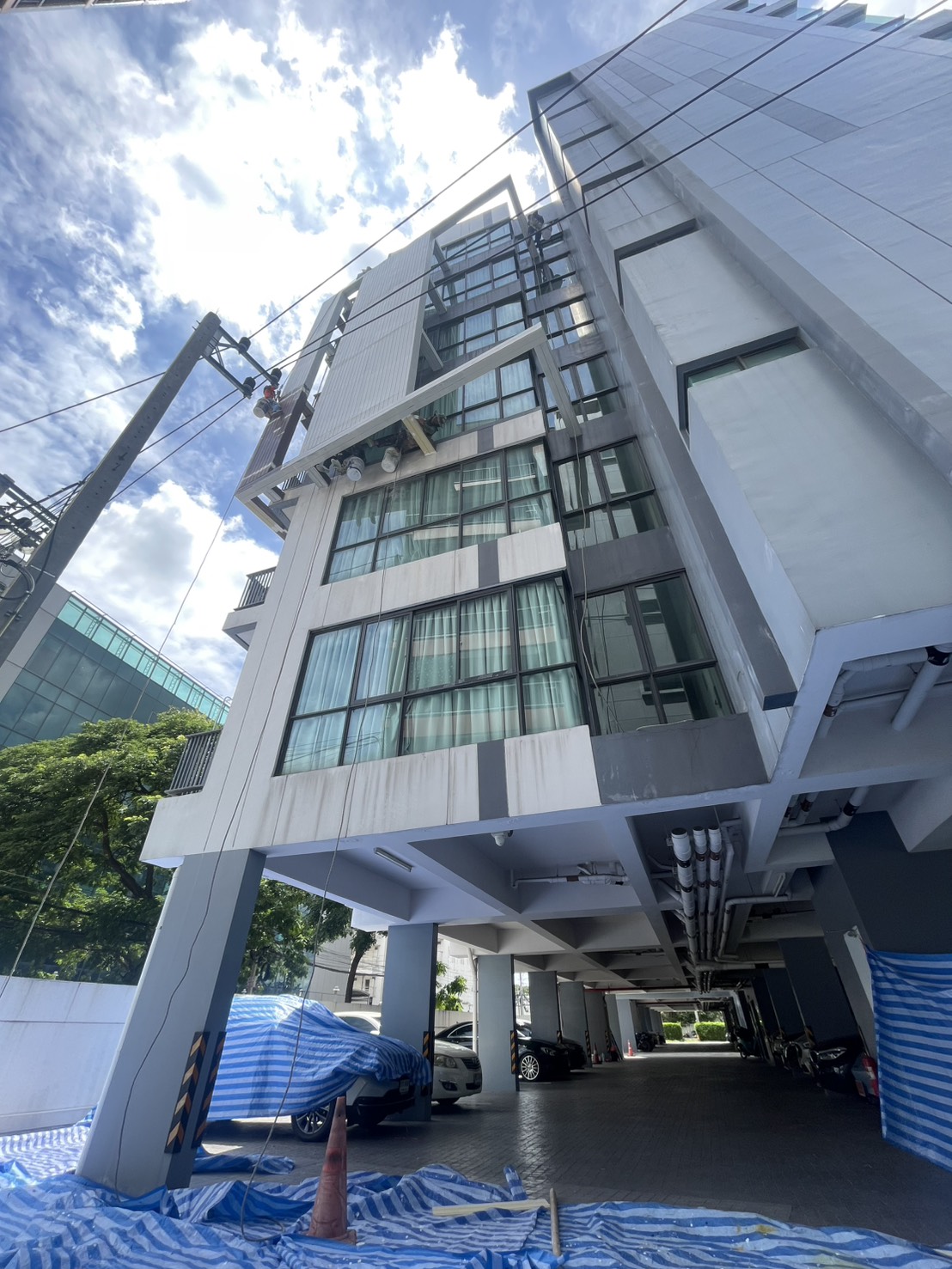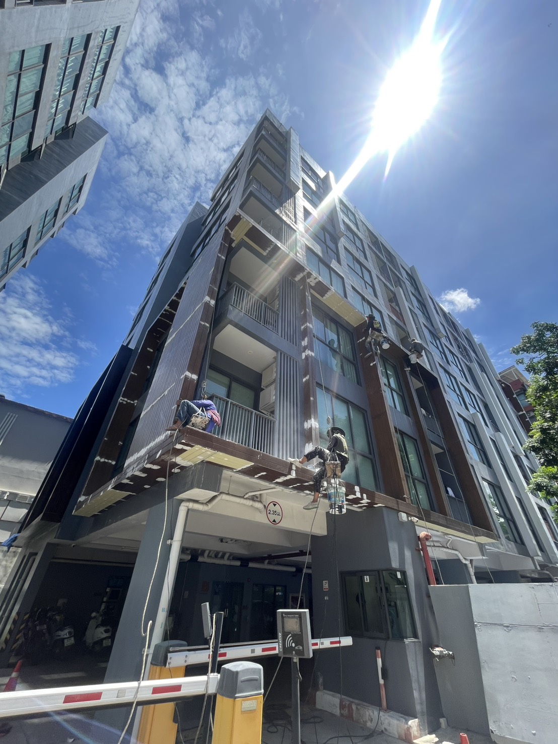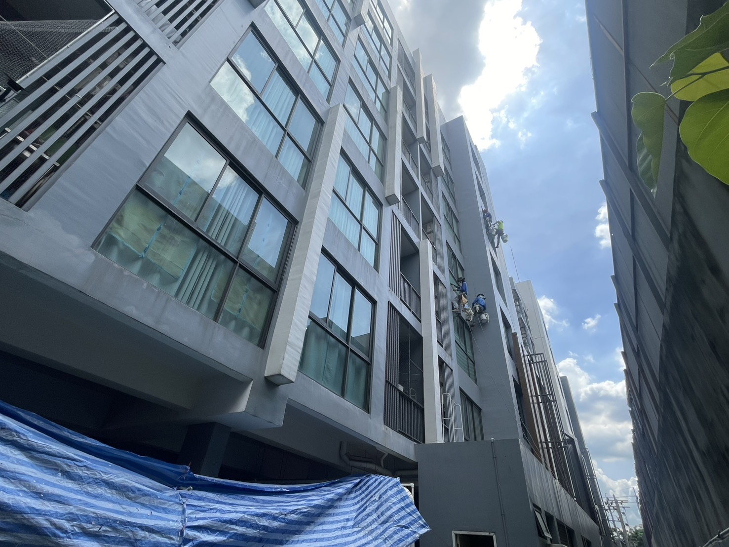 ยิงขอบกระจกและทาสีที่ตึก โมทรีฟ แจ้งวัฒนะซอย 10