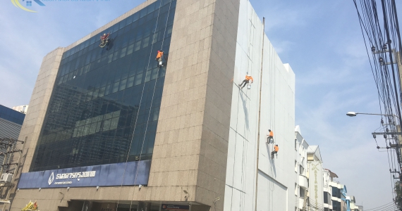 งานพ่นสีน้ำมันเมทัลชีทรอบอาคารทั้งหมด
